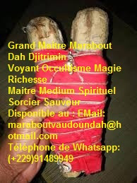 Je suis connu simplement comme DAH DJITRIMIN et j'ai apporté beaucoup d'aide dans la vie de milliers de gens comme vous. Personnellement, J'ai plus de 20 années d'expérience et d'expertise dans les anciens arts suivants : la sorcellerie, la magie blanche , la magie noire et les sortilèges. J’ai hérité cela de mon père et celui si de mon grand père. J'ai beaucoup apporter d'aide dans plusieurs familles et couple qui sont dans le besoin de : retour d'affection, protections , argents , amour , santé , sortilège, magie noire, magie d'amour, guérisons de maladie mystique etc... tous sont satisfait de mon travail et de mon efficacité d'agir face a ces problèmes qui trouble le monde aujourd'hui. Beaucoup des gens dans ce monde se désespère et d'autre finie même par croire qu'il n'y a plus d'espoirs pour eux alors que cela et faux ! car moi DAH DJITRIMIN je possède le remède absolut pour lutter contre tout mal et tout probleme mystique tell est ma mission sur terre. Tout mes produits sont garantie 100% et sans effet secondaire ni amère ni autre inconvénient que vous pouvez vous imaginer. Avec moi Dah Djitrimin plus de problème et plus de soucie dans le monde car avec moi les problèmes sont barre a jamais dans ce monde. Moi Dah Djitrimin je vous apporte la satisfaction totale tout comme je le fait avec des centaines voir des milliers des gens dans le monde.